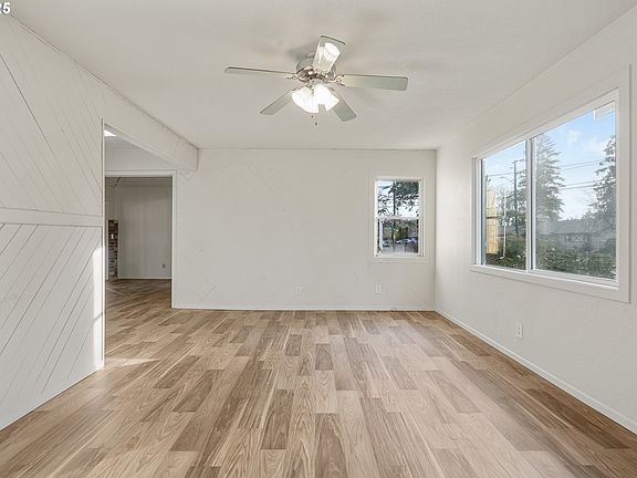 Updated charmer full of warmth, character, and modern updates! On a spacious lot, this home effortlessly blends original features with thoughtful improvements. Step inside to brand-new LVP flooring and carpet, fresh interior paint, and a new furnace. Two inviting living spaces boast large picture windows and a cozy wood stove—perfect for rainy days. The kitchen offers easy access to the backyard, making indoor-outdoor living seamless. A covered deck and fully fenced yard create the perfect setting for summer BBQs, gardening, or simply unwinding under the trees— this space is made to be enjoyed! Need extra storage or a workshop? The detached, extra-deep 2-car garage is ready for whatever you have in mind. With parks, schools, and shops just minutes away, this home is the perfect blend of convenience, comfort, and character. Come see it for yourself! [Home Energy Score = 7. HES Report at https://rpt.greenbuildingregistry.com/hes/OR10236011]
