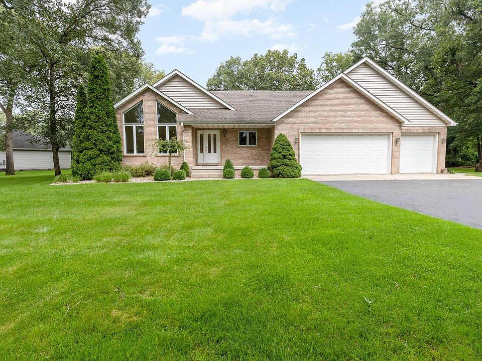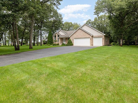 Welcome to this charming brick ranch home nestled on a one acre lot in Rustling Oaks. Upon entering the home, you are immediately greeted with a vaulted ceiling spacious foyer that leads into the formal living room and dining room. The kitchen boasts a large center island with additional sink, custom cabinetry, Corian countertops, and built-in office space adjacent to an additional dining area leading into the rec room with fireplace. The home features wood floors leading into the bedrooms with double closets and privacy blinds sharing a hall bath with vaulted ceiling and skylight. The master offers an en suite with double vanity and walk-in closet. You can relax on the covered front porch or on the new maintenance free deck out in the spacious yard with in-ground sprinklers. The laundry room contains cabinets for extra storage along with the oversized three car heated garage and full basement.