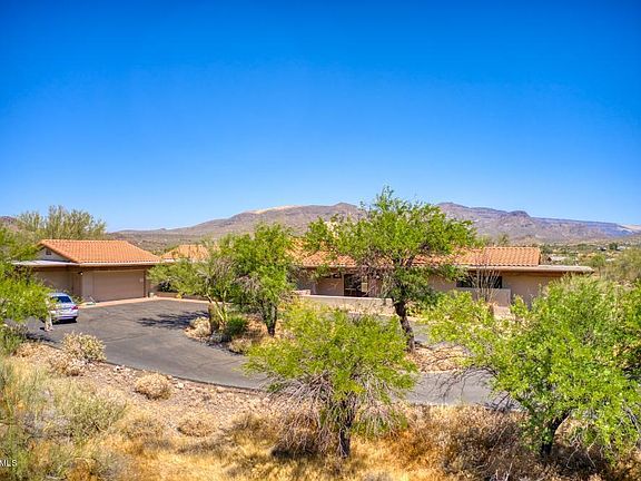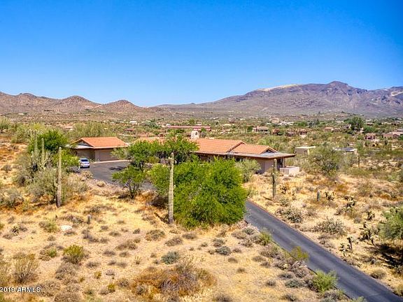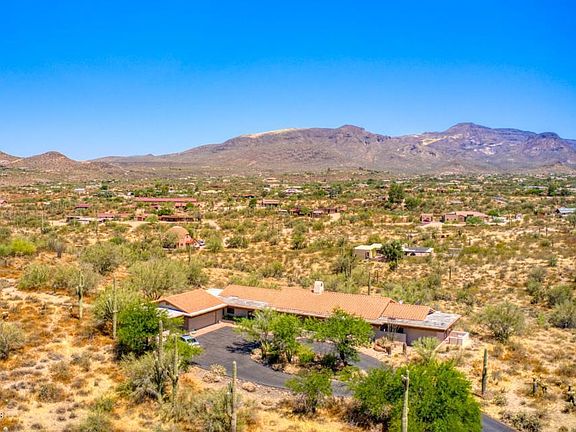 Drive up the circular driveway of your 5.4 acre lot to your secluded hill top single level home. Enjoy 360 views of majestic mountains and desert. Although you will feel the quiet and separation of a hill top desert retreat you will be a mile from the dining of downtown Cave Creek. Will you walk to dinner in the fall and winter? Maybe on the nights you don't cook while enjoying the views from your kitchen. Every room has beautiful views! One expansive patio is accessed from both the dining and family rooms. You private patio is through French doors in the master. Vaulted ceilings with exposed beams. You will appreciate the split floor plan and your guests have an ensuite. Click 3D Walkthrough under virtual tour to walk through every inch of the home from a computer or mobile device.