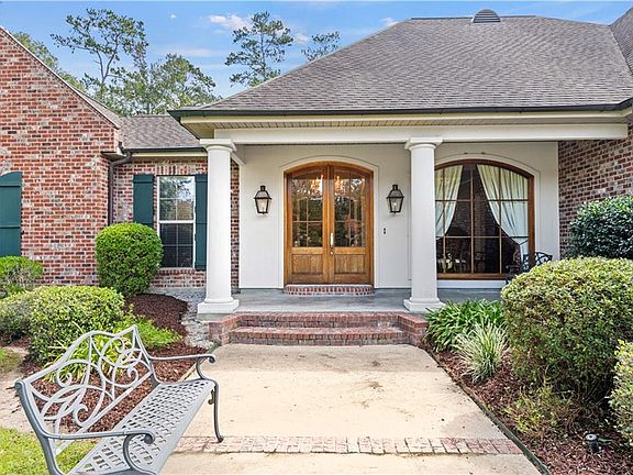Discover a beautifully designed French Acadian-style home offering over 4,268 square feet of living area on a landscaped 1-acre lot. Located in Ponchatoula, this property provides convenient access to both New Orleans and Baton Rouge for individuals who travel or work between the two cities. The home includes four bedrooms, two and a half bathrooms, and a private office, with 10-foot ceilings throughout and 12-foot ceilings in the foyer and dining room. Interior features include crown molding, solid 8-foot wood doors, oak and travertine flooring, and decorative lighting fixtures. The kitchen is equipped with granite countertops, custom oak cabinetry, GE Monogram appliances—including a 48-inch refrigerator/freezer—and a large island with built-in refrigerator drawers. A separate butler’s pantry with a warming oven and a custom wet bar with pecky cypress wood offer additional functionality. The bar opens to a screened patio, designed with entertaining in mind. Additional features include two gas fireplaces with custom oak mantles and an oversized two-car garage with a climate-controlled storage room. Construction highlights include 14-inch stud spacing, copper gutters, working shutters, underground utilities, and a 27kW natural gas generator with a backup propane tank. A certified energy-efficient Trane HVAC system is also included. The exterior offers professional landscaping, an irrigation system, French drains, gas lanterns, and floodlights. This home offers a balance of design and utility in a location convenient to major metropolitan areas.