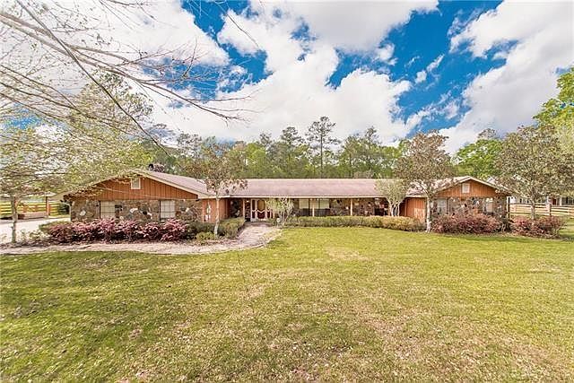 Ponchatoula Gem! This rare ranch house is truly one of a kind from its breathtaking property entrance to the spacious 4 bedroom/3 bath floor plan. Oversized kitchen for entertaining, big living room, cozy den, wet bar and a large stone fireplace with stone imported from the Smoky Mountains. Property has a workshop, 12x20 weight room, relaxing back courtyard/front porch, 5 covered parking spaces which includes a 2 car garage. You really cant find property like this anymore. New roof, Flood zone X, and never flooded.