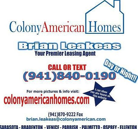 New New NewWill be ready mid November!ALL NEW INSIDEThis house is located at:3939 Day Bridge PlaceEllentonFL 34221CALL OR TEXT 24/7941 - 8 4 0- 0 1 90brian.leakeas@colonyamerican.comNo recent evictions, bankruptcies, unpaid landlord collections, or repossessions.Credit score of 550+Monthly income 3 times the monthly rental rate.Application fee is $35 per adult, all adults must complete an application. To move in you need: first months rent and a security deposit equal to first months rent (depending on credit history) (no exceptions or payment plans)
