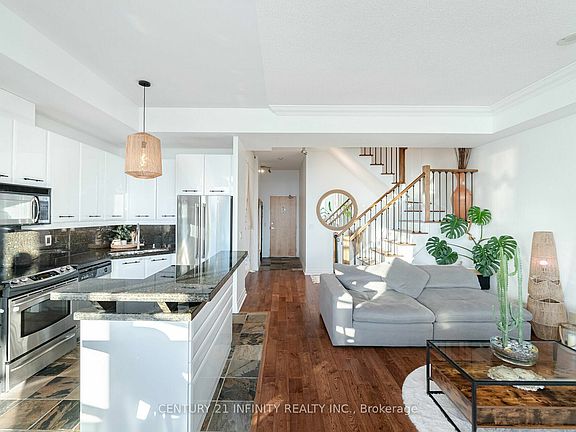Rare & Stunning All Utilities Inclusive 2-Storey Penthouse Condo! Luxurious Living Experience & Complete Privacy With Truly Breathtaking Unobstructed Views To The North And West, Perfect For Watching Unforgettable Sunsets Over Downtown Mississauga And Celebration Square ** Over 1800sqft Interior Space ** Largest Condo In Building ** Maintenance Fee Includes All Utilities ** Open-Concept Layout. 10-Foot Ceilings On Main Floor, Hardwood Floors Throughout And Floor-To-Ceiling Windows That Fill The Space With Natural Light While Showcasing The Gorgeous Views. The Condo Is Beautifully Renovated With Modern Finishes Throughout. Spacious Living Room With Cozy Fireplace That Enhances The Ambiance. Mirrored Wall In The Dining Room And Beautiful Chandelier Add A Touch Of Elegance To The Space. The Modern Kitchen Features Granite Countertops, Central Island And Stainless Steel Appliances. Step Out Onto The Open Balcony Directly From The Living Room To Enjoy Outdoor Relaxation And Gorgeous Views, While Storage Under The Stairs Provides Additional Space. The Main Floor Also Includes A Powder Room For Guests And A Den With Multiple Potential Uses.2nd Floor Has Large Primary Suite With 3pc Elegant Ensuite And His-Hers Closets. 2nd Large Bedroom And Modern Main Bath With Sleek Finishes. 2 Versatile Dens For Various Separate Uses ** Or Combine Both Dens, Add A Door & Create A Third Room With A Large Closet, As Illustrated In Picture** Convenient Laundry Room. Top-Tier Amenities, Swimming Pool, Bbq, Terrace, Mini Golf And Gym. Ideally Located Near Celebration Square, Library, Shopping, Transit, Go Station, College, School Routes & Highways. Enjoy Privacy And Comfort In A Central Location That Offers Panoramic Views And An Elevated Lifestyle. Don't Miss The Opportunity To Own This One-Of-A-Kind Penthouse! **EXTRAS** Maintenance Fee Includes All Utilities!! Hydro, Heat And Water. Parking & Locker.
