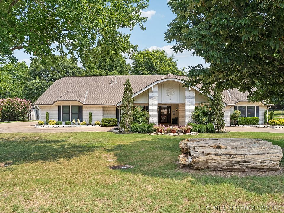 A "stunning outdoor oasis" w/vaulted arbor and grill with kitchen for entertaining. Located in the heart of Jenks, and in the Jenks SE school district. One level features an open formal living and flex dining area and open kitchen/family. Newer appliances, well maintained thru out w/hardwoods and tile, casement windows and original moldings & 6 panel hardwood doors. 3 car side entry garage with circle drive, and porte-cochere. Split bedrooms, high impact roof, full brick, and flex floor plan. Great primary suite w/saferoom. Lots and lots of storage. It won't last! See it now!!