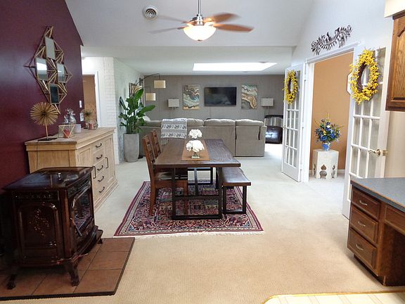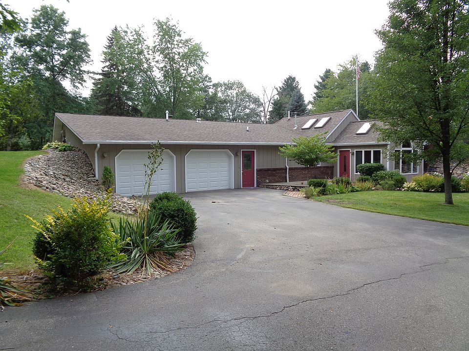 Beautiful brick & cedar ranch home on 3.2 acre rolling, treed lot. The home is set way off the road and is accessed by the paved, winding drive through the trees. Open floor plan. Lots of natural light through-out. Every room except the kitchen has skylights. Large kitchen with new stainless steel range & refrigerator. Spacious dining room with Harman pellet burner. 4 season, sun room off dining with walls of windows overlooking the rear yard. Vaulted ceiling & additional wood/pellet burner in the living room. Master bedroom with walk-in closet. This is a berm home & is very efficient. Seller's average utility bills are under $100/mo. The home has 2x6 walls &added insulation & drainage around the house. There is a spacious paved patio area off the back of the house & many perennial beds offering beautiful views. In addition to all of the above...there is a 30x28 attached garage, a 20x30 pole building with electric & a 2 story outbuilding with electric and a wood burner.