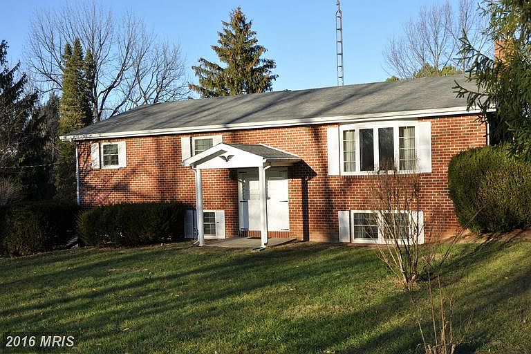 Well maintained mostly brick home w/hardwood floors throughout main LV.Mstr has full bath & walkin closet.2 additional bedrooms on main level. Eat in kitchen w/access to covered rear porch overlooking farm land.Sep dining room & living room.Lower level has FR w/wood burning FP converted to gas,laundry room & possible 4th BR.Large oversized 2 car garage,several outbuildings & run in.Unrestricted.