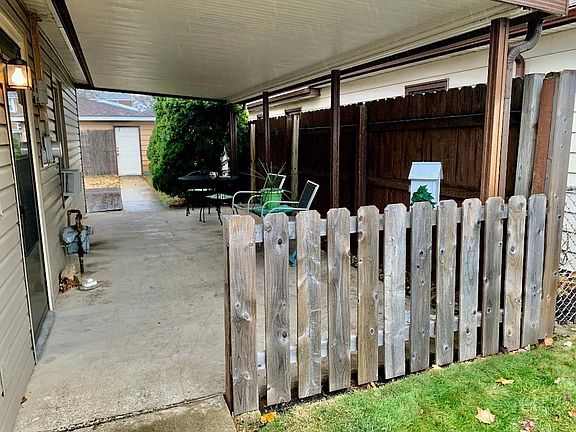 A must see! Absolutely charming 2 bedroom home - nothing to do but move in! Great home for entertaining, 10x20 covered concrete side patio and decking throughout the back yard - floorlights for evening fun! Complete privacy fenced yard. Oversize 2-1/2 car garage. Lots of plumbing updated in the past 5 years (bath and laundry area). New roof, siding and gutters on both house and garage in 2016. New side steel door and new side screen door in last 2 years. 2 window A/C - approx. 2 years old. Most of the home has been freshly painted and carpets cleaned. Newer wood blinds in many rooms. New bathtub glass door and plenty of storage cabinets in the bathroom. New porch lights and mailbox, pillars in front covered porch recently boxed in, wrapped and painted. Boiler hot water heat - heated floors throughout. All appliances stay EXCEPT refrigerator. Seller offers one year home warranty. Not a stair to climb in this lovely home. Don't wait - come see and you'll fall in love!