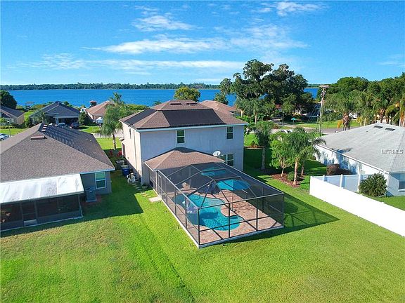 EVER WANTED TO FEEL LIKE YOU LIVE ON AN ISLAND? This is your chance! CHAIN OF LAKES, LAKE FRONT,SALT WATER POOL HOME COULD BE YOURS! Lake Views from the front and back of the home! Former Adams home model! Oversized Driveway holds 6 Vehicles! You will be enamored with all the beautiful upgrades. The sparkling leaded glass entry door greets you as you make your way in. There you have the grand foyer that leads you to the open great room! Master bedroom is downstairs! Love to cook? Kitchen is clad with Cambria Quartz Counters and ceramic tile Arabesque tile backsplash. Stainless steel appliances which all stay! Kohler 33" Prolific single basin sink with colander, soak bin, cutting board and 2 grates. Moen Arbor Motionsense faucet! Upgraded light fixtures in Dining area and kitchen Island. Beautiful wood look tile downstairs. Walk into the master ensuite and you have a beautiful view of Lake Conine. The master bath has a garden tub with separate shower and double vanities with corian! Huge walk in closet! Upstairs you have 4 more bedrooms with a huge loft area! Lake views from all the bedrooms and loft! Laundry room has front loading washer and dryer which stay! Lots of storage in this home! Take a dip in the salt water, pebbletec pool while relaxing and enjoying the lake views you have! Beautiful brick pavers adorn the pool deck! Helicoil solar heating panels for the pool and a sunshelf with bubbler for the little ones! Take your jet skis or your boat out on the chain and have loads of fun in the sun!
