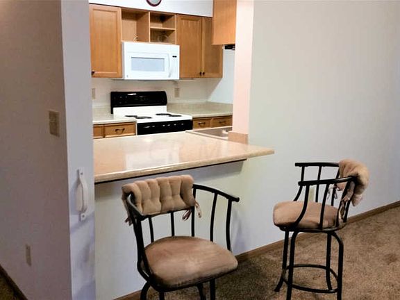 Ready to move-in 1st floor unit at Northland Senior Village - Secured building for people age 55 and over. New paint & carpet plus enclosed porch area. This unit was built as a 1-bedroom (not 2) and space added to master and created an eating area. Nice unit!