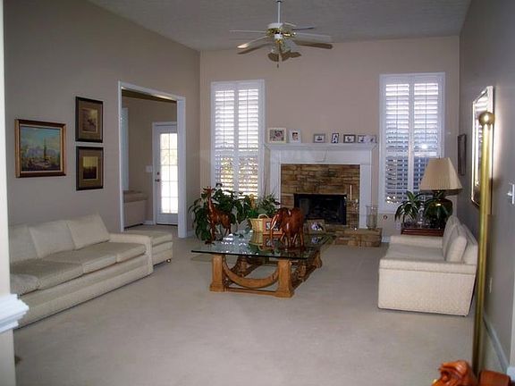 Absolute 10! Move-in ready ranch with large master and two secondary bedrooms. Nice great room with high ceilings leads to open dining room. Updated kitchen with high end appliances, tile floor, and granite countertops. Separate breakfast bar and area. Cozy family room looks to kitchen and private backyard. Patio and beautiful stone wall leading to outdoor upper sitting area with fire pit. Master bath is fabulous! Dark cabinets, seamless glass shower with tiled walls, tile floor and private WC. Garage has plenty of room for work benches, cabinets, or storage racks. Quiet neighborhood with sidewalks, pool, tennis, and playground. This is a quality built home and is ready for new owners.