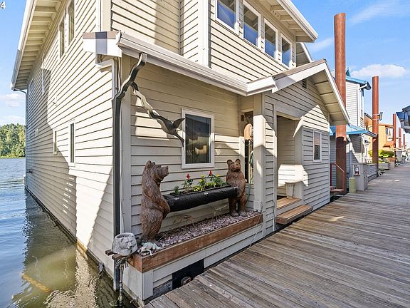 MOTIVATED SELLER! Welcome to this immaculate 3-bedroom plus bonus room, 2-bathroom custom floating home situated on a sturdy concrete float. Recently assessed with a float score of 4, this home is move-in ready and primed for luxurious riverside living. The main level boasts a spacious open concept layout highlighted by an impressive stone fireplace, a convenient office space, and a comfortable bedroom. The well-appointed kitchen features modern gas appliances and seamlessly connects to both the dining room and a deck, perfect for soaking in the serene river views.Upstairs, the primary suite offers a tranquil escape with a stacked tub, dual vanity, and a private patio that opens onto an upper balcony. Additionally, a large bonus room awaits, ideal for workouts or hosting movie nights with a built-in theatre screen.Enjoy the charm of exposed wood logs, providing a cozy log cabin ambiance right on the Columbia River, where you can indulge in all your favorite water sports activities. Located within the Class Harbor gated community with a robust HOA ensuring a well-maintained and secure environment. Offering slip ownership, a detached 1 car garage with storage & assigned parking space.