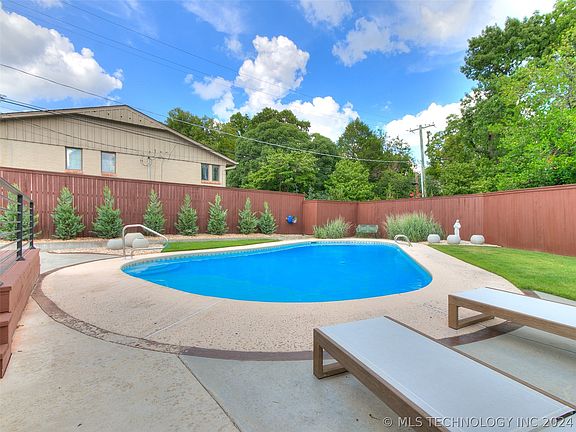 You do not want to miss this beautiful and tastefully updated Midtown-single story home, offering a serene pool and Fantastic private backyard oasis. Located in a quiet cul-de-sac, this home is the perfect blend of relaxation and entrtaining. With two living areas, each equipped with a fireplace, you have ample space for cozy family nights or having over friends. Newer large windows flood the space with natural light offer stunning views of the tranquil backyard and pool. This home boasts 3 beds and 2.5 baths. Two bedrooms host their own en suite making it great for guest retreats or families. The Luxury remodeled primary suite offers a spa like atmosphere with massive shower providing a retreat at the end of the day along with a private deck and coming in from the stunning backyard. Plus ALL of this only minutes from Brookside, the Gathering Place, Utica Square, and Riverside.