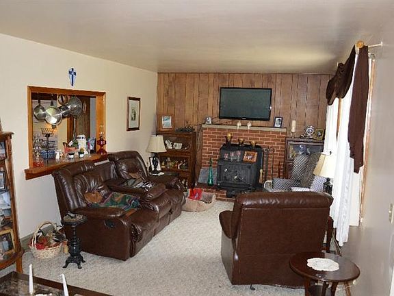 Fantastic ranch!! Updated bathroom less then 2 years old. 10 year old barn with five inch concrete floor, office and water. Three possible stalls. Some new windows. Hardwood floors. First floor laundry and a two car garage.