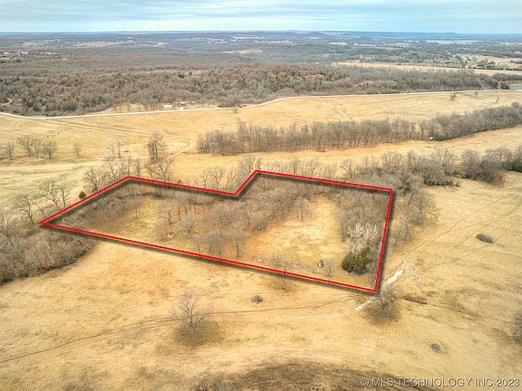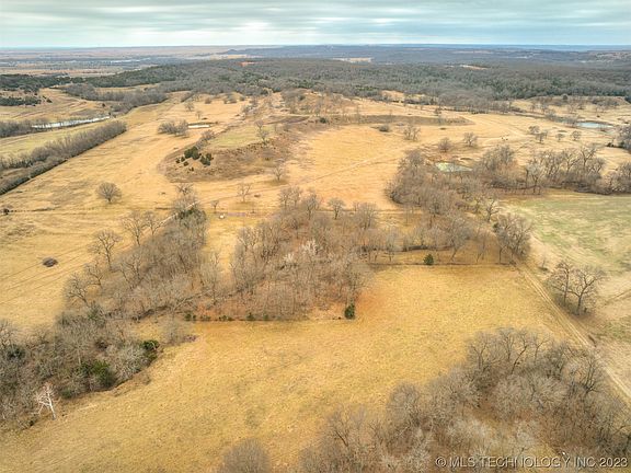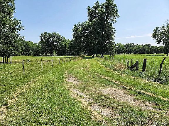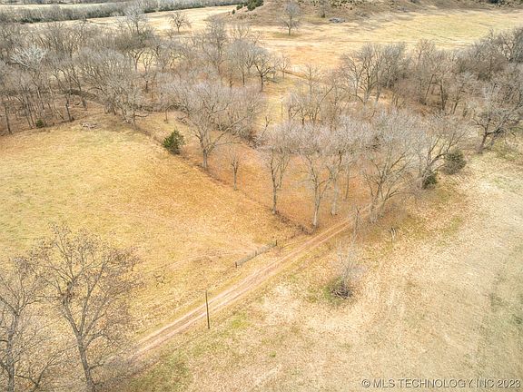 Unique fully fenced 6.45 acres surrounded by ranch land. Private 1,200 ft driveway. Partially wooded with several large pecan trees and a wet weather creek that runs throughout. 3 miles from the distribution center and 12 miles to Bartlesville. Has electric and two water wells on the property. Rural water is available at the road. No restrictions and mobile homes are allowed.