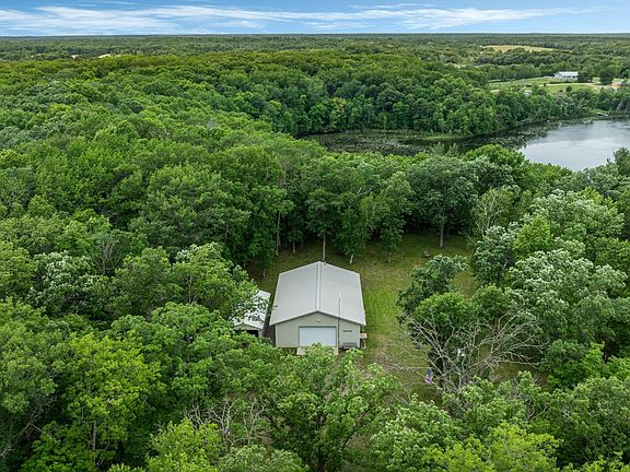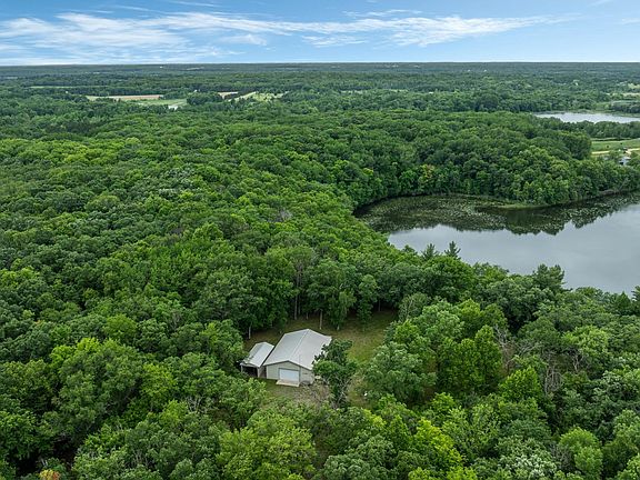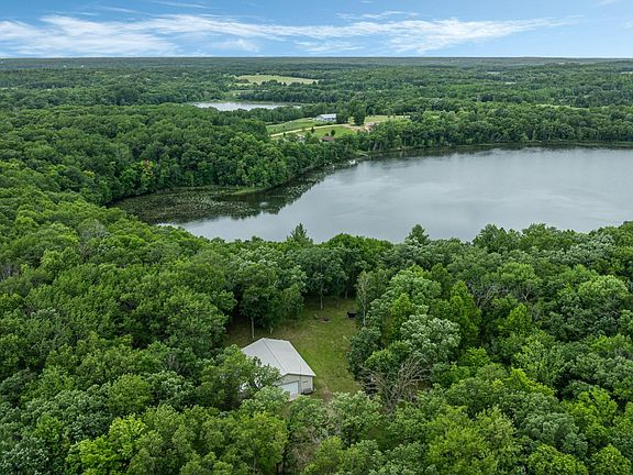 Escape to nature with this rare opportunity to own nearly 15 rolling acres of mostly highland, wooded terrain—perfect for year-round living or an easy-to-winterize seasonal getaway. This scenic property includes 991 feet of lakeshore for boating, fishing, and swimming, plus abundant wildlife. The land is private and peaceful, ideal for recreation, relaxation, or even future development. There are trails for ATVs and other outdoor activities. This property is a “shouse” style home which is split into a garage and a comfortable living space. Perfect for weekend getaways! There is also plenty of space to build a single-family home overlooking the water. Perfect for outdoor lovers, hobbyists, or anyone looking for privacy and a connection to nature. No association fees!