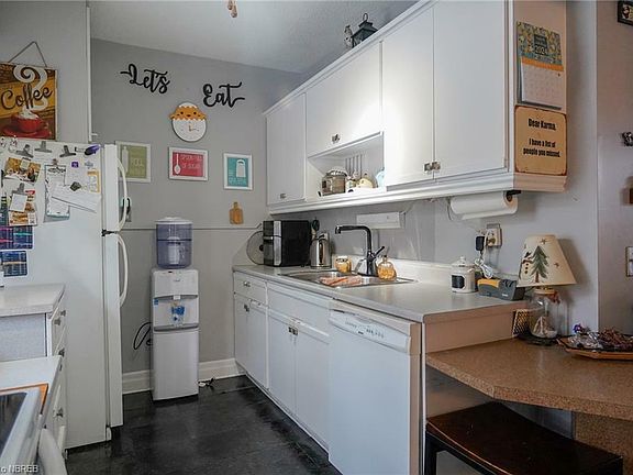 Welcome to this well maintained centrally located home that is setup for a variety of uses. The main floor offers a move-in ready living space and kitchen along with a large bedroom. Main living/dining area features large bright windows allowing lots of natural light. Upstairs you will find a second kitchen along with a large bedroom and second room currently being used as a second living space. There is also a separate entrance that leads directly upstairs. Basement includes ample storage space and laundry. All of this on a corner lot with manicured yard. Other features include, detached garage (currently workshop), gas BBQ hookup, 5-year-old furnace, updated electrical, new AC unit and fresh paint and updates throughout.