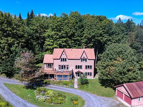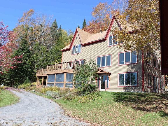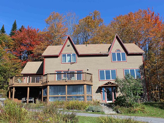 Vermont at it's best! This spacious home offers 3 floors of living space, 67 acres, views and complete privacy. Located just a heartbeat away from Burke Mtn Ski area and the Kingdom Trail system and surrounded by wooded beauty. The walkout basement entry floor offers a mudroom, an office/studio space, a large bedroom and bath as well as access to the screened in porch area under the deck. The main living floor offers a study/den/bedroom, living room, kitchen and dining area. The second floor offers 3 bedrooms including a master suite with bath and walk-in closet as well as a second bath with laundry. Once an a-frame, this home has been modified to it's current space and beauty. Hardwood floors and natural woodwork throughout. Enjoy 2nd floor views of Center Pond and surrounding mountains. Beautiful perennial flower beds, lilacs, blueberry and raspberry bushes, apple trees, a small pond, outbuildings and a two-car garage to complete the picture. A fairy tale in the making. . . make it yours!