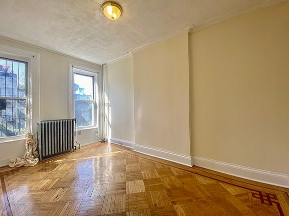 2nd floor of 3 floor brownstone in good shape with old details intact. Eat-in kitchen, north and south light. Four rooms in a row but with a hallway, and a small room off the big room in front, nice for work from home or small bedroom. Multiple entrances; good for shares, ideal for couple. Freshly painted and sanded/coated floors; brand new stove. (NOTE: Pictures taken before paint, poly, and stove). Funky details, lots of closets. Well-kept building. Square footage is estimated but building is 20x60. Between 4th and 5th Avenues and Flatbush Avenue, so many bars, restaurants, laundromats, and misc. stores right nearby. Landlords also live nearby.