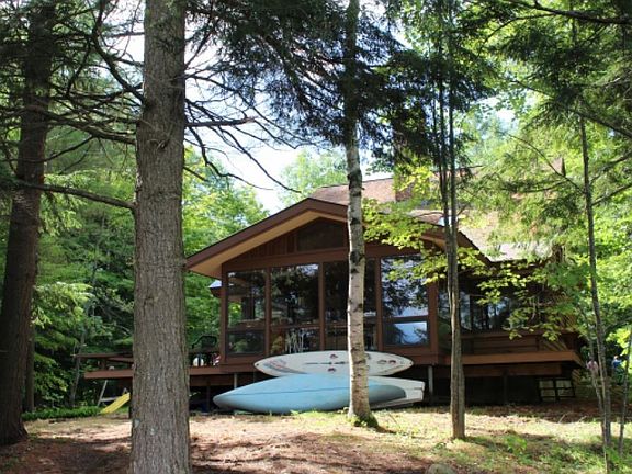 Enjoy a front row seat for all the sights, sounds and pastimes of waterfront living! With considerable frontage on desirable Lake Fairlee, this attractive year round property is well suited for a variety of life styles. Designed with flexibility in mind, the spacious blueprint grants nicely allotted space for guests as well as the lucky owners of this lakeside delight. The three bedroom main portion of the dwelling connects nicely to generous guest accommodations. Cathedral ceilings, copious windows, wrap around deck, and a perfect porch are but a few of the highlights that make each season here even better.