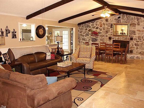 Huge open living room and gourmet kitchen! This home sits on just over 3 acres and offers a fenced back yard, detached 2 car garage, beautiful shade trees, and a beautiful setting. Chef's dream kitchen with gas stove and large refrigerator, lots of granite counter tops! Large master and updated master bath with large walk in shower. Large yard area and seconds from the by-pass. Agents see remarks.