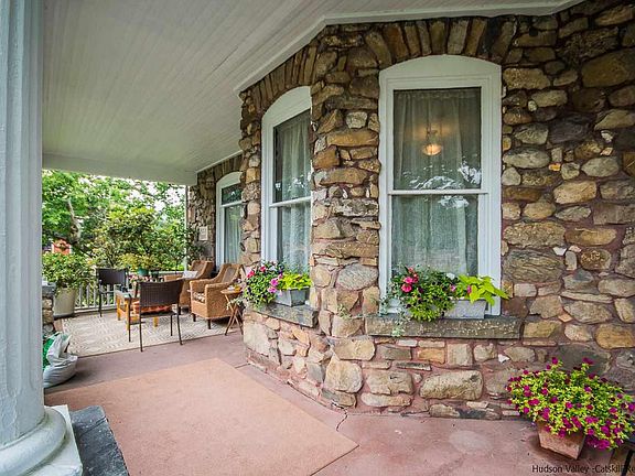 This home is a true Craftsman-era stone & cedar gem with 21st century amenities. They include; custom kitchen of oak, granite, with two gas Jennaire ranges -recently renovated, generous bathrooms, -an extra roomy great room addition, -private rear deck with mountain views -and an in-ground pool with a lovely patio and open mountain views The beautiful American Chestnut woodwork, wood floors, stained glass, metal roof, handmade stonework and graceful lines transport one back to more tranquil times at the beginning of the 20th century, when details & craftsmanship were everything in a home. They don't make front porches like this one anymore. This home makes an excellent place to display treasured artwork, fine crafts and beautiful furnishings. It is not easy to find such a home today. Clearly it was built to last and features a terrific basement and attic for plentiful storage or a rotating art collection. It is very conveniently located 5 minutes from vibrant Kingston ("Brooklyn-on-Hudson") and 18 minutes from the Metro-North train station in Poughkeepsie. Or, enjoy the beautiful vistas from the privately sited swimming pool and extensive surrounding patio and garden. Have the better of all worlds here. Of note, this home is well set back from the road and totally peaceful inside, with a location and site also suitable for professional/commercial use, if so desired. It is worth considering this excellent location for short term rentals, (according to any code requirements), given its proximity to Kingston, Rhinebeck, Woodstock and New Paltz, and its stunning pool and patio.