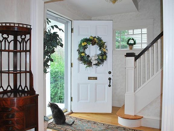 A delightful blend of vintage-style charm with modern functionality. The features we love about older homes are here - gleaming maple floors, classical millwork, french doors & lighting, even the updated bathrooms splurged on the details. The subtle introduction of color in the window treatments, paint choices and beautiful tilework are tastefully applied and showcases the homes friendly personality. New 2-zone efficient gas heat and air conditioning installed for your comfort. Nice room layout for sociable spaces. The first floor offers a spacious living room with brick fireplace, open to the dining room and bright sunroom. Eat-in kitchen with stainless steel appliances. Cute little 1/2 bath off the back hall. 3 bedrooms and 2 full baths upstairs. Walk up attic offers extra storage. The covered breezeway off the back of the house is a wonderful spot to entertain or just hang out. Attached two-car garage. Fenced in backyard. Big corner lot. Convenient location near schools & highway