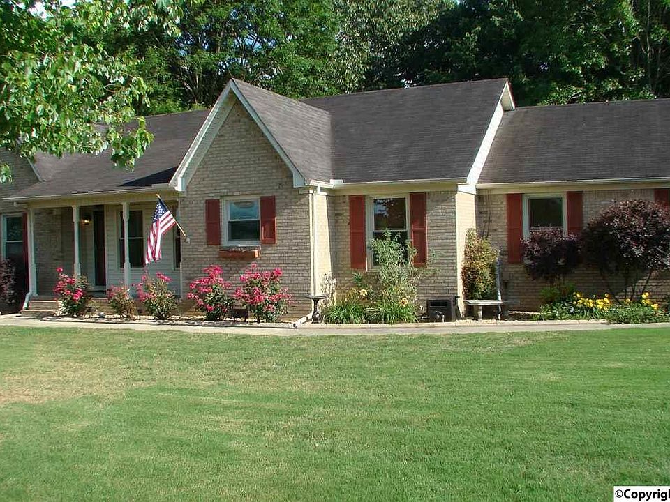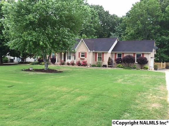 This nicely laid out home sits back off the road & is nestled among the trees on over a 1/2 acre lot w/a large deck, & lovely flower beds. The secondary bdrms & bath are separate from the master suite. There are two closets of equal size in the master bath & a sitting area in the master bdrm w/a large bay window overlooking the backyard. Off the kitchen is a flex room that could be used as an office, dining room, play room, craft room whatever you might need. The living room has a wood burning fireplace w/laminate flooring. The flex room & entry way have hardwood floors, bdrms have carpet & kitchen, dining, baths & laundry have ceramic tile. The garage has 10' ceilings for lots of storage.
