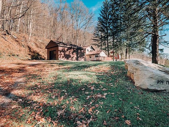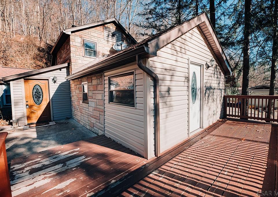 This home offers so much peace and tranquility on almost 1.5 acres, surrounded by woods on a dead-end street. The large deck and patio provide plenty of outdoor space to entertain and you'll never be at a loss for parking with two driveways. Inside you'll find an eat-in kitchen and a living room with access onto the front deck. The main floor also has two bedrooms and an updated full bath with ceramic tile and laundry hookups. There are newer windows and floors throughout. Completing everything is a 24'x19' garage/workshop!