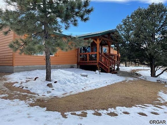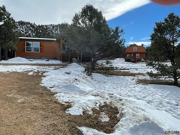 Immaculate, move in ready house nestled amongst a variety of trees and wildlife that boast views of the Sangre De Cristo Mountains and Pikes Peak is awaiting you. There is not enough that one can say about this house and all that it has to offer. This house was set new on the property and the owners paid for several upgrades to make it more inviting. The living room is graced with vaulted ceilings and large picture windows that allows for an incredible amount of natural lighting. The kitchen and dining area have plenty of room to entertain guests while preparing a delicious meal. The main sleeping quarters is generous in size and offers a private bathroom where you do not have to share with guests. The guest quarters offers plenty of room for nice sized furniture and a spacious closet to tuck your suitcase away. French doors open up to a room that could be used as a den, a formal dining area, or a cozy movie/ rec room. There is a 14' x 36' shed/studio just off to the side of the house with a covered porch where you can enjoy a hot cup of tea bursting with flavor. Inside you will find two lofts. The 24' x 36' car port comes with a utility shed/shop on the back side. There is a 30' entry door and a rolling overhead door on the side that is 6' wide. Don't let this beautiful property pass you by call and schedule your private tour today. Make this house your home today.
