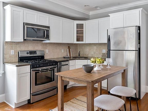The water views from this lovely 2bed/2bath Penthouse in South Boston are only the beginning! Located on the downslope of Thomas Park, the beach is only a block away! Boasting over 1000sf over two floors, choose from one of two en suite bedrooms- they both have water views! Enjoy the cozy living room with fireplace, a chef's kitchen w/ stainless steel appliances, hardwood floors throughout and tons of natural sunlight. This home also features 2 private outdoor spaces- a deck off the bedroom looking over Carson Bay, and a rear deck off the living room, ideal for outdoor dining and entertaining. Fully equipped with an in unit washer/dryer, central AC, and two full bathrooms. One block from the beach, and three blocks from Broadway- everything you need within a 1/2 mile radius!