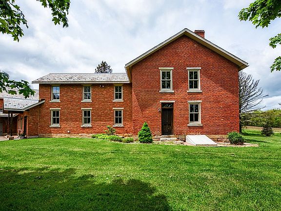 BEAUTIFULLY restored and expanded 1890 farmhouse w/ modern design elements along with an attached 4-car garage w/carriage house, bank barn w/ 2 addt'l garage spaces, original barn, and an aerated 1 acre stocked pond. 60 FABULOUS acres include open space, woods and productive fields. LOCATION! 10 min from Moraine and McConnells Mill State Parks, 50 min to Pgh. Adjacent to 488 acres of PA Gamelands and Slippery Rock Creek for trout fishing. No detail was missed in this 2008 renovation! The open concept kitchen will please any gourmet cook w/high-end SS appliances featuring commercial Jenn-Air gas stove, Miele steamer, wine/bev fridges, butcher block countertops, farmhouse copper sink, massive island for prepping. Spacious dining rm w/an adjacent parlor accommodates your LONG table for large gatherings. The upper level hosts loft space, a master suite and a farmhouse bunk room. Kit, gar, bank barn and bsmt floors contain radiant heat. 2 efficient HVAC units via space-saving Unico system.