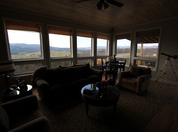 This 3 bed, 2 & 1/2 bath home has views, views, views from every room in the house. Large windows throughout with a spacious open floor plan. Large partially covered deck to take advantage of the ultimate in stargazing. Hot tub strategically placed on deck. House also features 2x6 exterior framing, extra insulation, gas logs, hardwood floors, custom cabinetry in kitchen, attached garage, sound system (speakers throughout house), large master bedroom w/ balcony and a metal roof. Some furnishings are available.The 15 acre parcel features views into the Elk Creek Valley and Jefferson National Forest. Mostly open. Property also has a large 24 x 48 metal building and fenced areas for livestock. Almost new Kubota 4 wheel drive tractor with bushhog and other implements also available.This property is located in close proximity to all of the recreational opportunities Grayson County has to offer. Not far from the New River, Grayson Highlands Park, Jefferson National Forest, horse trails, hiking and biking and trout fishing.