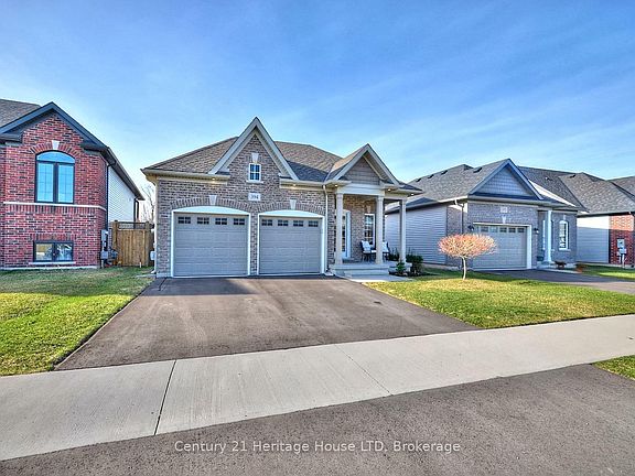 394 Hummel Crescent offers an inviting blend of style, functionality, and low-maintenance living in Fort Erie's desirable Lakeshore community. This modern 1,396 sq. ft. bungalow is designed with a bright, open-concept layout that seamlessly connects the living, dining, and kitchen areas ideal for both everyday life and entertaining. The spacious great room features large windows and patio doors leading to the elevated rear deck, filling the space with natural light and offering a relaxed indoor-outdoor flow. The main floor offers two well-sized bedrooms and two full bathrooms. The primary bedroom includes a walk-in closet, a sleek 3-piece ensuite, and private access to the back deck. The second bedroom features soft carpeting, a large window, and ample closet space. The main 4-piece bathroom is tastefully finished with a tub and shower unit and conveniently located for guests. The kitchen boasts quartz countertops, a large centre island, stainless steel appliances, and pot lighting, making it a central gathering spot. A full laundry room with a convenient man door from the garage, a window, laundry sink, and closet adds practicality to the main floor. The unfinished basement provides plenty of storage and future development potential, with egress windows and a bathroom rough-in already in place. Outside, enjoy a covered front porch, double driveway, and attached garage with remote entry, offering space for three vehicles. The fenced backyard includes an upper-level deck, perfect for relaxing or hosting friends. Other noteworthy upgrades include central air conditioning, furnace, upgraded hardwood flooring on the stairs to the basement, a full glass front door, living room pot lights, and two lights over the kitchen island. Located minutes from the QEW, local parks, trails, and shopping, this home is an ideal fit for anyone seeking comfort, convenience, and modern living in a peaceful neighbourhood.