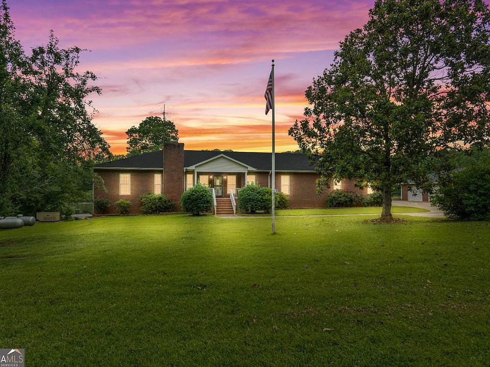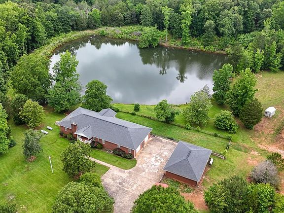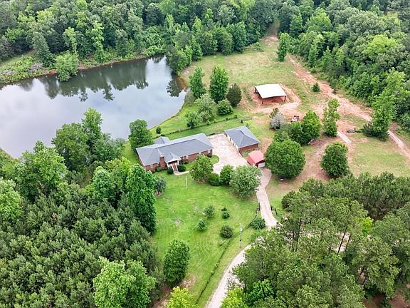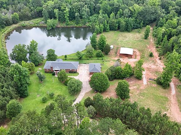 Welcome to 394 Hunter Road-an exceptional gated estate nestled on nearly 38 acres in the peaceful north end of Pike County. Though the mailing address is Griffin, this property is fully located in Pike County, offering the benefits Pike County serenity. As you arrive, a gated entry leads to a concrete driveway with ample parking and a private, peaceful setting. The four-sided brick home is situated just steps from a scenic pond and surrounded by landscaped grounds that include fruit trees, rose bushes, flowering shrubs, and open green space. The property includes multiple outbuildings: a three-car detached brick garage that matches the home, a 18x20 enclosed barn with a roll-up door, and a high-quality red-iron pole barn with a dirt floor-ideal for equipment, trailers, or agricultural use. The main house also offers an attached two-car garage. Inside, you're welcomed by a large living room featuring a floor-to-ceiling brick fireplace with granite accents, designed to be used with gas or wood. The oversized kitchen includes a center island with a six-burner cooktop, built-in microwave and oven, dishwasher, abundant cabinet space, and both a breakfast area and a formal dining area. Off the main living space is a bright sunroom with expansive windows overlooking the pond. The spacious owner's suite features a large walk-in closet and an en suite bathroom with a double vanity, makeup prep area, garden tub, separate shower, and water closet. Two additional guest bedrooms are generously sized with ample closet space and share a well-appointed hall bathroom. The home also features a massive laundry room with an additional storage closet. The unfinished basement offers a full footprint of the main level and is already stubbed for plumbing and equipped with electrical-providing incredible potential for expansion, storage, or workshop space. Additional features include a tankless water heater, whole-house generator, and a hidden safe room for secure storage. The property is serviced by a private well with a filtration system and a septic tank. Trails throughout the acreage allow for easy access by foot or ATV, making this a true multi-use property perfect for recreation, farming, or private retreat living. With its stunning setting, abundant space, and thoughtful design, this one-of-a-kind property is a rare find in Pike County. Schedule your showings today!