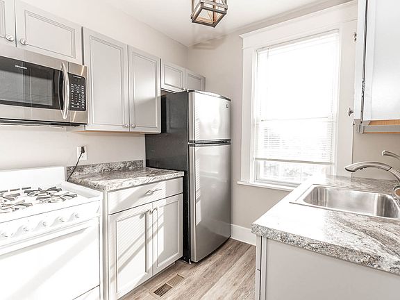 This spacious one bedroom apartment in Beechivew is newly renovated with a new kitchen and new full bath, new flooring, lighting, and paint. This large one bedroom has 3 closets including a large hall closet and access to the basement for storage with shared laundry on the first floor. It has central heat and AC. Just a 5 minute walk to the T station or to West Liberty, this apartment offers style, comfort and convenience at an affordable price. Pets welcome subject to approval and additional deposit. Utilities separately reimbursed to landlord. This property is a large brick home with a first floor unit and a second floor unit. There is a large basement for shared storage. One unit has a covered porch and the other has a patio on the opposite side of the house. It's located in the Beechview neighborhood in the City of Pittsburgh. It's convenient to the T and local dining options and there's plenty of street parking on both Ingomar and Mackinaw.