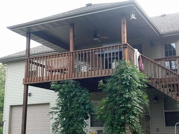 This amazing finished walkout basement home is tucked away on a private cul-de-sac! Offering Clever Schools, just west of Clever proper. Along with 3 acres, trees, seclusion, it offers great curb appeal, 36 x 12 John Deere room with overhead door, large covered deck, patio, and park-like setting. Inside flows very well...hosting great colors, neutral carpets, raised ceilings, lots of storage, painted trim & doors, wood burning stove, and dedicated laundry. The kitchen provides a good size breakfast bar, lots of cabinet & countertop space, pantry, and a cool dining area. As for the master...it offers walkin shower, double vanity, jetted tub, tray ceiling, walkin closet, and is good size. Finished basement has 4th bedroom, 2nd living area, and full bath. Home shows well. Must See!