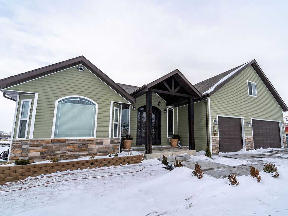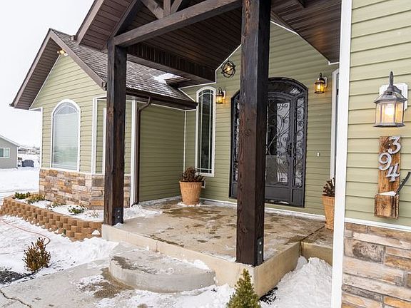 Welcome to this stunning custom home, from the moment you walk up to the front door and see the custom iron built door you will be left in awe until you leave. Main level of this home has a large kitchen with top of the line appliances, and two ovens, a very large island perfect for entertaining, dinning area, and a living room with built in shelves, a built in pellet stove keeping it plenty warm in these cold winter months, 2 bedrooms and one full bathroom, and the nicely sized mud/ laundry room! Every room in this house is very nice sized! Upstairs you will find the master suite, with a large bathroom and jetted soaker tub. Full finished basement offers two more bedrooms a large living area that is perfect for a projector screen, and a full bathroom as well as an office room. (This has never been lived in or used was just recently finished and completely permitted) Outside the sellers have amazing landscaping with sprinkler system that of course you cant see because of the snow, a covered patio and a huge kids play area that has a PAVED bike track.This Home is truly a must see with all the added features the sellers had done while building making it very unique!