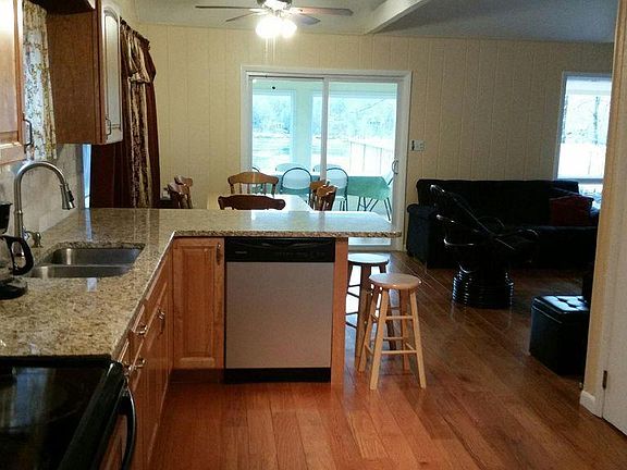 INCREDIBLE LAKEFRONT! Let your Lake Front make money for you and enjoy time there for yourself. Excellent rental history!!! - Spacious 6 bedroom, 4 bath lakefront home in amenity filled community! New within the last 2 years Kitchen Granite and Stainless Steel, New roof on house and garage. New 31 foot deck on upper level with 1/2 covered glass roof. 25 x 16 Hot tub room can easily convert to Master bedroom with attached bath and walk in closet. Large parking area and your own sandy beach. Home features open floor plan, living room with fireplace, family room, hot tub, private beach with fire pit, and dock. Converted garage into large game room. Perfect family retreat in gated community with pools, beaches, tennis, clubhouse, and teen center.