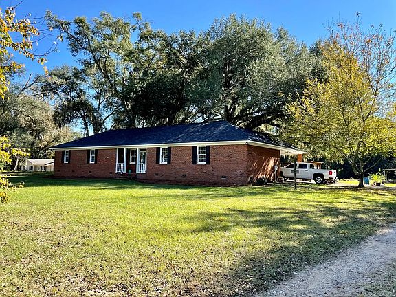 Wow what a rare find in Lee County! This 3 or 4 bedroom hand 2.5 bath sits on almost 2.5 acres and offers a lot of house for the money! Walk into a great room with rustic wood wall, a huge brick fireplace and built in book cases on each side of the fireplace.The kitchen has lots of. real wood cabinets and some good counter space.. Dining room is open to the kitchen and great room and offers plenty of space for dinner or entertaining... There is a large bedroom off of the kitchen that could be a master bedroom with private bath and spacious walk in closet. Go past the great room and find a large office/4th bedroom with a sunroom off of it(not counted in sqft) there is a guest bedroom that is also very large and has a private half bath and a large walk in closet too, the huge master bedroom is at the end of the hall and has access to an updated bathroom with new double vanity and new shower plus a HUGE walk in closet as well.... Outside you will find a nice covered back porch that you can enjoy the views and peace and quiet. Walk out into the fenced back yard and enjoy the shade from the gorgeous historic live oak trees that surround the back of this property. Out back you will also find a large workshop and some extra covered work areas or a place to park your boat. This home has so much to offer and so much more potential for the new home owner. This home does qualify for the USDA 100% financing loan.