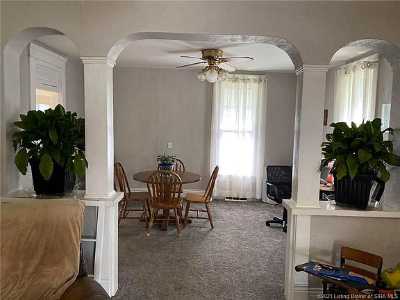 Quaint 2 Bedroom, 1 Bathroom home located right in City of Scottsburg. Corner lot with over a 1000 sq. ft. makes this a perfect smaller affordable home. Has everything you need - Master Bedroom with attached Full Bathroom and an extra Bedroom for a guest or an office or craft room. Living Room & Dining Room. Kitchen has all appliances that stay includes stove, fridge, washer and dryer also. First floor living! Back Fenced in yard. Detached 1 car garage. Low utilities & Taxes!!