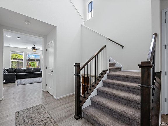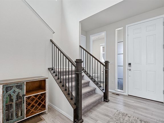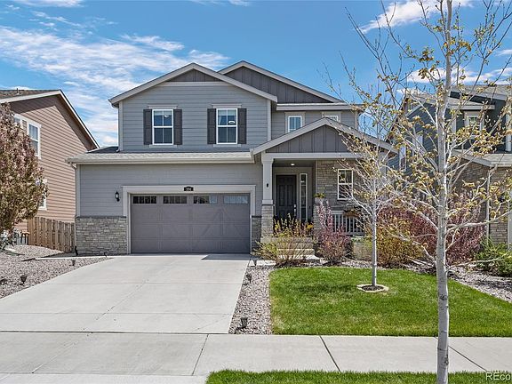This fantastic home in the wonderful Adonea neighborhood was built in late 2020 – the original owners would never give it up if not for a change in job location. We worked together with Lennar to really make this home special and to get the finished product just right! The Sellers have since added beautiful lush-green artificial turf for the backyard (a big money saver when it comes to water costs), along with low-water trees and irrigation, plus a stained patio with a pergola. This great community is friendly and supportive, with social gatherings and events for adults and families, plus parks, playground and of course its own pool. Inside this home you’ll enjoy the open eat-in kitchen and living room, with granite counters and awesome backsplash tiles. Upstairs finds the bedrooms filled with natural light. It’s the little things that also matter: a relaxing front porch, a huge linen closet upstairs, seated mudroom off the garage, extra garage storage, and two separate wireless access points. The unfinished basement is ready for your imagination – the current owners have enjoyed it as-is for storage, a playroom and an INCLUDED Tonal Smart Gym and bench (professionally mounted, total of $5K value, you just take over the monthly membership fee). Or add equity to this home and finish the basement to your taste, with the ability to add a 4th bedroom or in-law suite! Sunnova solar panels are yet another special feature, bringing your electrical costs way down. Reward yourself with this lovely home (inside and out), the welcoming community and its amenities, and enjoy plenty of nearby shopping and a fast commute to DIA.