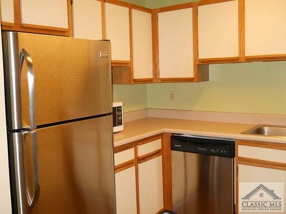 Totally updated and fancy inside. 4 Bedrooms and 2 baths, patio. Hardwood style pergo floors, stainless appliances, carpet in the bedrooms. Refrigerator, oven, stove, dishwasher, washer and dryer all in the condo. This has to be the nicest unit in Steeplechase. Kitchen has pass thru window to the dining area and living room. Sliding glass door to your private patio that overlooks a nice creek and woods. You are around the block from UGA, downtown Athens and Blind Pig. Walk, Ride or Roll to your classes and all the RockShows and dining that goes on in downtown Athens.