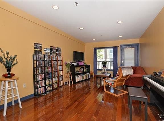 PRIME location! Renovated condo available for rent with large open living/dining area, perfect for entertaining. The apartment is rear facing, very quiet, with private deck off the living room. Two nice size bedrooms, hardwood floors, central a/c, and washer/dryer complete the unit. Close to the steps to the 2nd St. light rail and bus to NYC on your doorstep. And the new Milk Sugar Love ice cream shop is your neighbor! A great find! Off street parking available for rent approx $200/month.