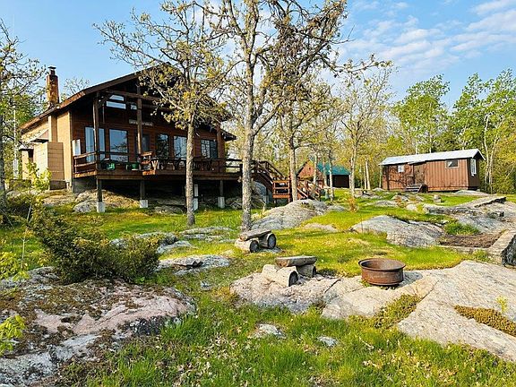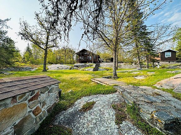 Price Cut! Top of the Nation Property For Sale! Penasse Island near American Point - 3 bedroom 1 bath, three season cabin, 4.80 acres with an amazing 825 feet of shoreline! Protected harbor, excellent views of the Canadian Islands - detached garage, walking trails, natural bedrock, with hand-laid stone steps, wood fireplace, and even a trolley to carry your heavy loads up to the cabin! Find your privacy and lake cabin relaxation here!
