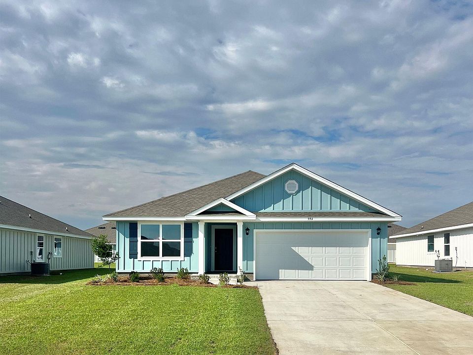 Welcome to Raley Farms Phase 2, ideally situated on Country Rd. 8 just moments away from the pristine Gulf Shores beaches. Enjoy community amenities, including a zero-entry swimming pool with scenic views of a pond surrounded by large oak trees. Step into the Aria, where the foyer opens to a captivating kitchen with a spacious pantry and island overlooking the living room. The bedroom suite features a generous attached bathroom with a double sink vanity, 5' shower, soaking tub, and a large walk-in closet. The second and third bedrooms are positioned on either side of the second full bath. Note that the photos depict a similar home for representation only. This home will be constructed to GOLD FORTIFIED HomeTM Certification, potentially reducing homeowner's insurance costs. It will also include the Home is Connected (SM) Smart Home Package. ***Pictures are of similar home and not necessarily of subject property, including interior and exterior colors, options, and finishes.***