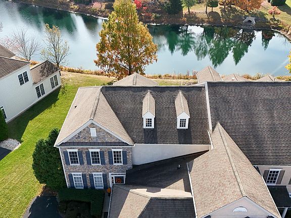 Luxury lifestyle awaits at the Reserve at Gwynedd on the pond with picturesque views from every room! Stately stone front end-unit, the Hillcrest Model in the prestigious gated 55+ active lifestyle resort community charms on the pond. There are only a few homes on the pond, this is your chance!!! Step inside the two story foyer and you will immediately feel the grandness of the open floor plan with extensive millwork, floor to ceiling windows, sweeping curved staircase and gorgeous walnut hardwood flooring throughout. Foyer leads to massive family room, with vaulted ceiling, gas fireplace flanked by floor to ceiling windows which welcomes any size gatherings. Elegant dining room with tray ceiling, crown molding and wainscoting, perfect for hosting dinners for family and friends. You will love cooking in the upgraded deluxe kitchen featuring stunning 42" cabinets, granite countertops, gas cooking and tiled floor. Take in the serene pond views during meals in the sun filled dining nook. FIRST floor luxurious owner's suite is spacious with a tray ceiling and floor to ceiling windows to view of the pond. Spa-like bath with double sink vanity ,soaking tub, walk-in shower and walk-in closet. Powder room and laundry room are conveniently located on the first floor with access to the 2 car garage. Strolling up the curved staircase you will find a loft area to unwind and relax, 3 nice sized bedrooms one with its own bath and a full hall bath. Enjoy the 8000 square foot clubhouse with indoor and outdoor pools, Fitness Center, aerobic room, jacuzzi, sauna and activities including billiards, cards, gathering room for fun times all directed by a full time activity director. Beautifully landscaped, resort style living for active adults who want to enjoy an active lifestyle. If you're looking for peace and tranquility, you will absolutely love this home on the pond. Don't wait.. push the video camera above to see the video!
