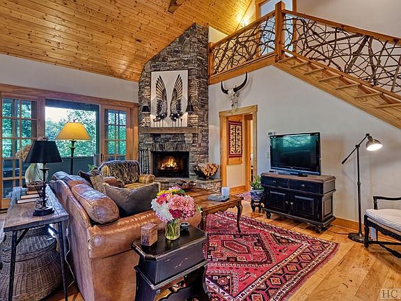 Wonderful 4BR/4.5BA Trillium village lakeside mountain view home, great room with wooden cathedral ceilings and floors & kitchen with stainless appliances, granite countertops, dining area with lots of windows, stone fireplace (wood burning). Screened porch has a nice fireplace, built in grill and adjoins the great room. Primary suite on main with deluxe bath with garden tub, separate shower and double vanities. Beautiful rhododendron railings on the staircase to the 2nd floor upstairs. Upstairs you will find a private bedroom and one bath with pretty mountain views. lower level has a family room with wet bar, 2 bedroom suites and a large screened porch. Perfect for family, all bedrooms have private baths. 2 screened porches to enjoy the cool breezes. Front porch is covered. Trillium Membership is optional which has many alluring amenities such as golf, tennis, croquet, Lake Glenville shared docks, golf clubhouse, pool. Membership is by invitation. All new carpet and paint and is being offered mostly furnished. A lovely family home in a great neighborhood with hiking trails. About Ten minutes to the Cashiers Crossroads, Village Green with great summer concerts and festivals, Library, schools, dining, and boutique shopping.