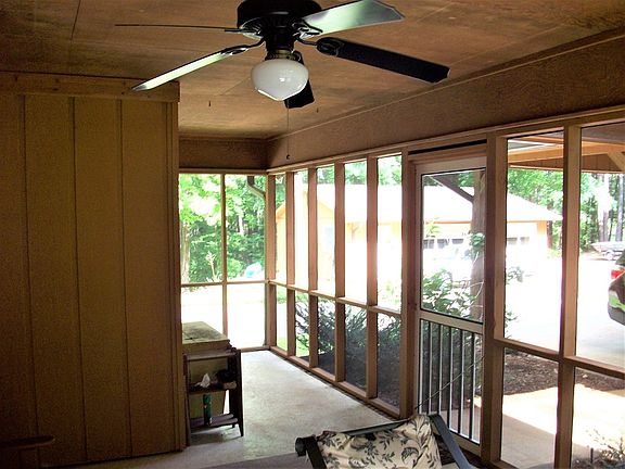 Covered parking is provided by 24X24 open carport, connected to the house by a covered breezeway that enters a sizable screened porch. Detached 2.5-car garage has 100 amp electrical service, 10-foot wide doors, water and LP gas service, plenty of workspace, and is fully wired. The lot includes a small stream in the woods behind the house, and the nearby neighborhood pond is visible fro the screened porch.