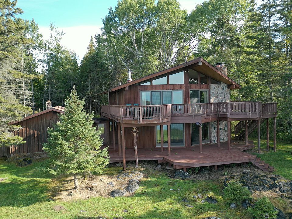 206' of hard sand bottom waterfront overlooking Mackinac Bay in the protected Les Cheneaux Islands! 3 Bed, 2 Bath home has floor to ceiling windows for spectacular vistas and plenty of natural light. Multi-Level deck and expansive front lawn provide plenty of room for fun and entertaining. Home has a paved driveway and detached garage with workshop. Recent repairs to damaged roof (see photos). Sold as-is and subject to probate court approval