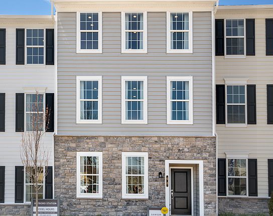 Spacious urban appointments. The Dawson's welcoming foyer and turned stairs lead to the spacious living level. The bright great room overlooks the well-equipped kitchen, complete with large center island and breakfast bar, plenty of counter and cabinet space, roomy pantry, and generous adjacent breakfast area. On the bedroom level, the beautiful master bedroom is enhanced by a large walk-in closet and deluxe master bath with dual-sink vanity and luxurious shower. Secondary bedrooms feature ample closets and shared full hall bath. Additional highlights include a convenient powder room on the living level, centrally located laundry and linen closet on the bedroom level, and flex space with adjacent walk-in closet on the lower level. Disclaimer: Photos are images only and should not be relied upon to confirm applicable features.